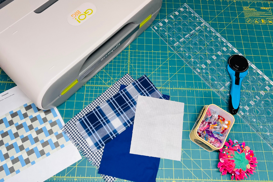 Now that you have your design finalized, it’s time to start cutting your fabrics. Accurate cutting is crucial for achieving precise quilt blocks. Use your quilting ruler and rotary cutter to cut fabric strips and squares according to your design’s measurements. Take your time to ensure the cuts are straight and even. For a perfect cut, you can also use an Accuquilt to cut your fabric.